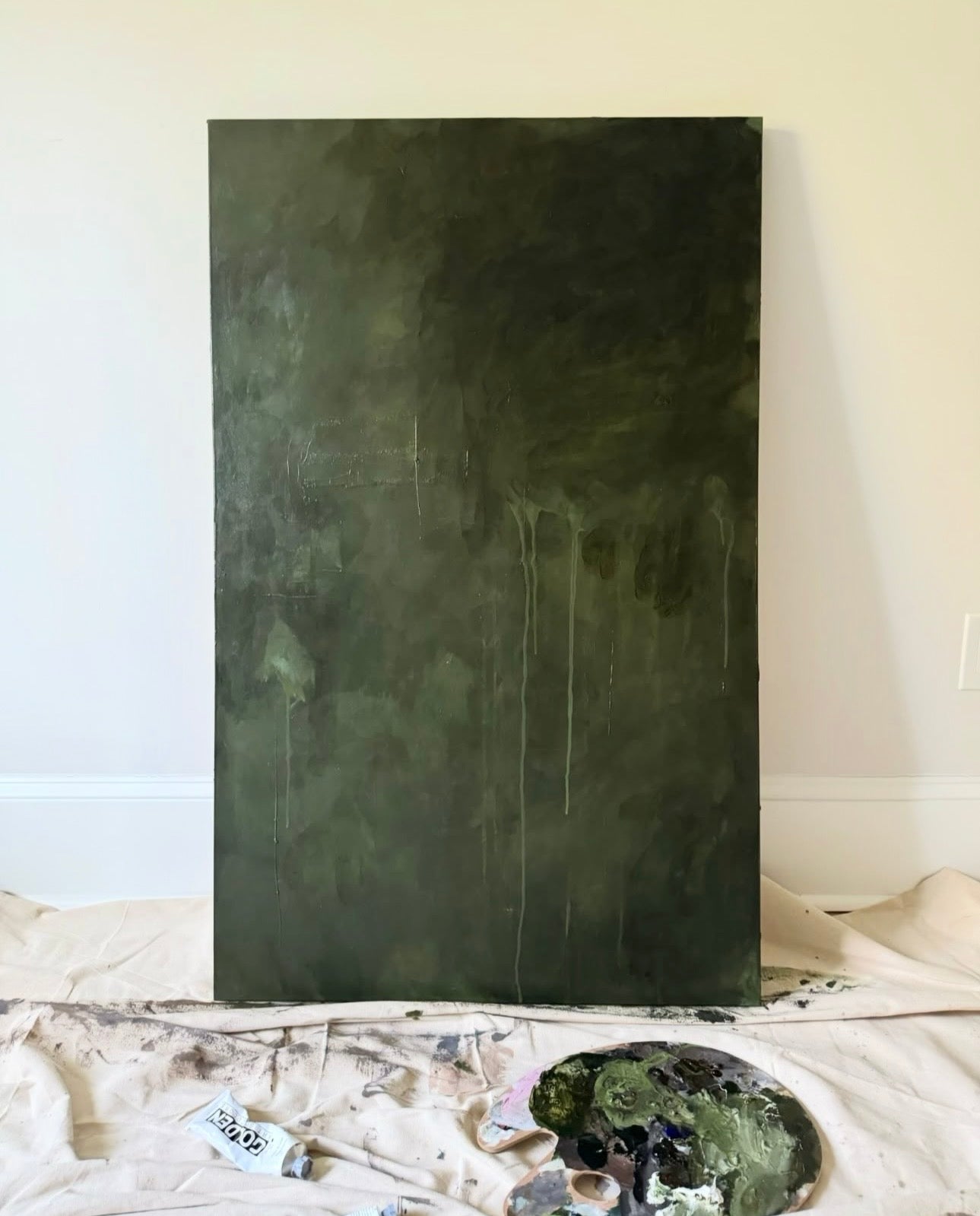 Green Haze is an immersive study in tone and mood. Layered greens flow into deeper shadows, creating a grounded yet mysterious atmosphere. Soft drips echo emotion beneath the surface, marking one of your early explorations into the monochromatic green style that now defines your work